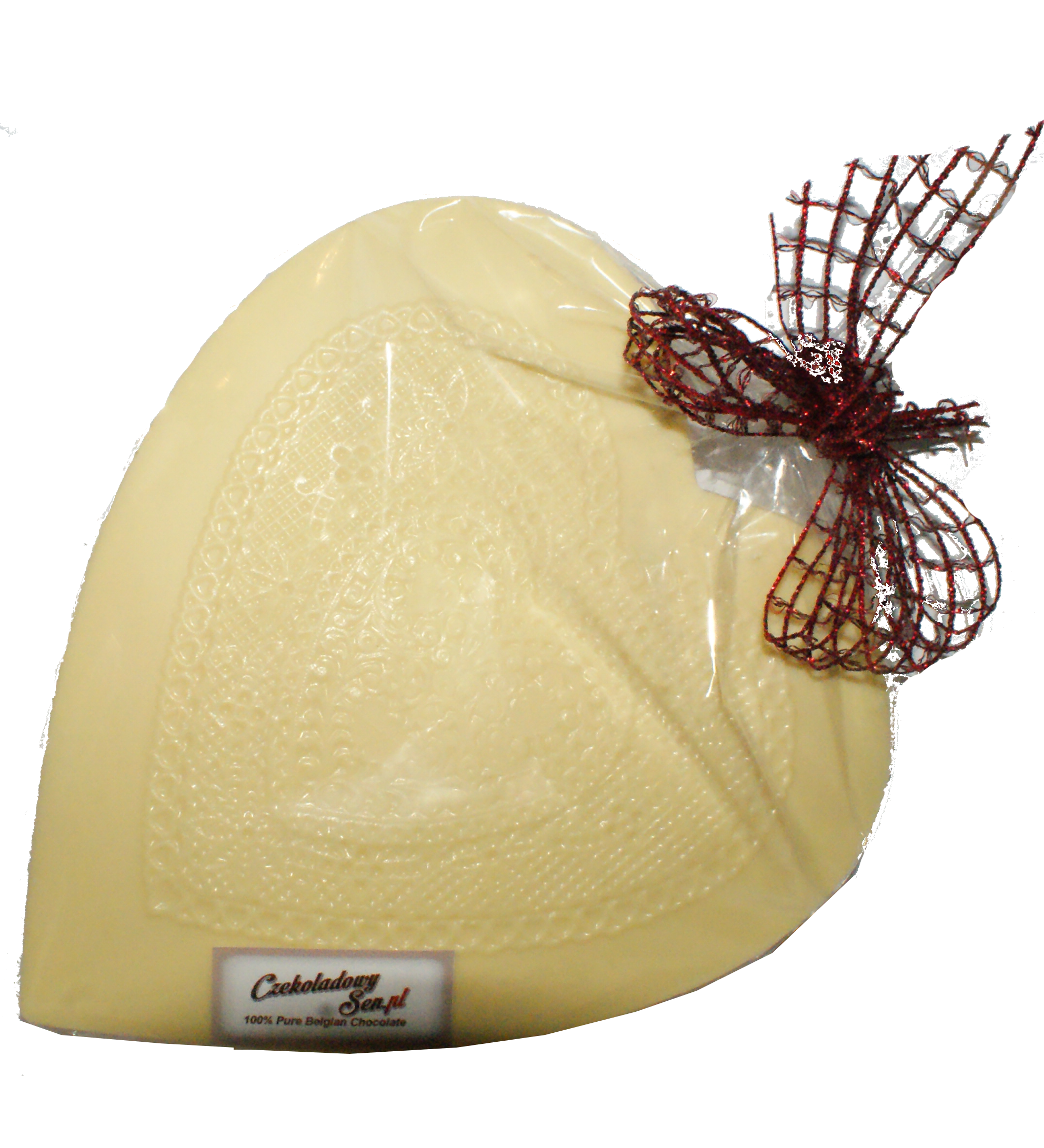 Koronkowe serce z czekolady dostępne z gorzkiej, mlecznej i białej czekolady